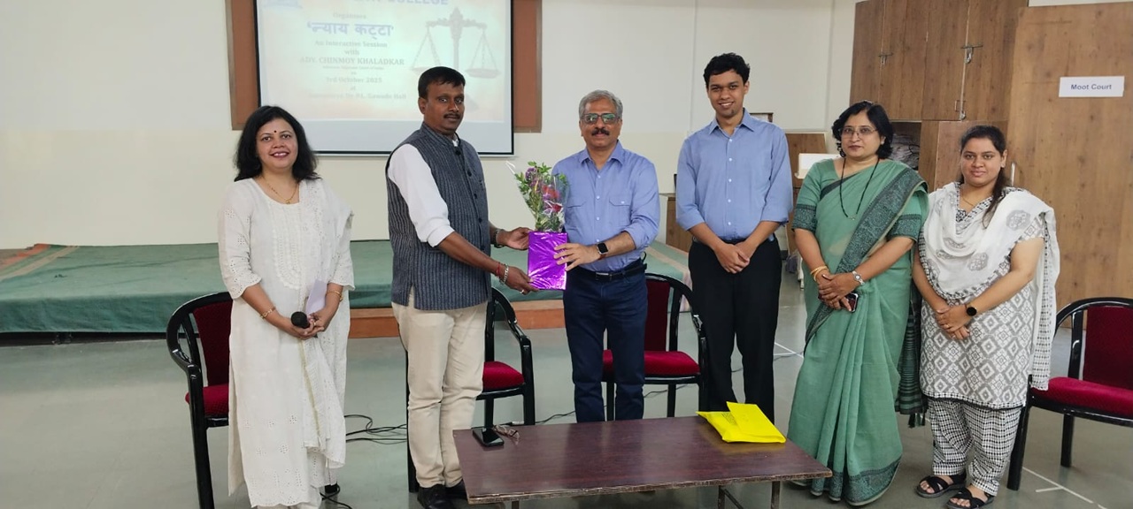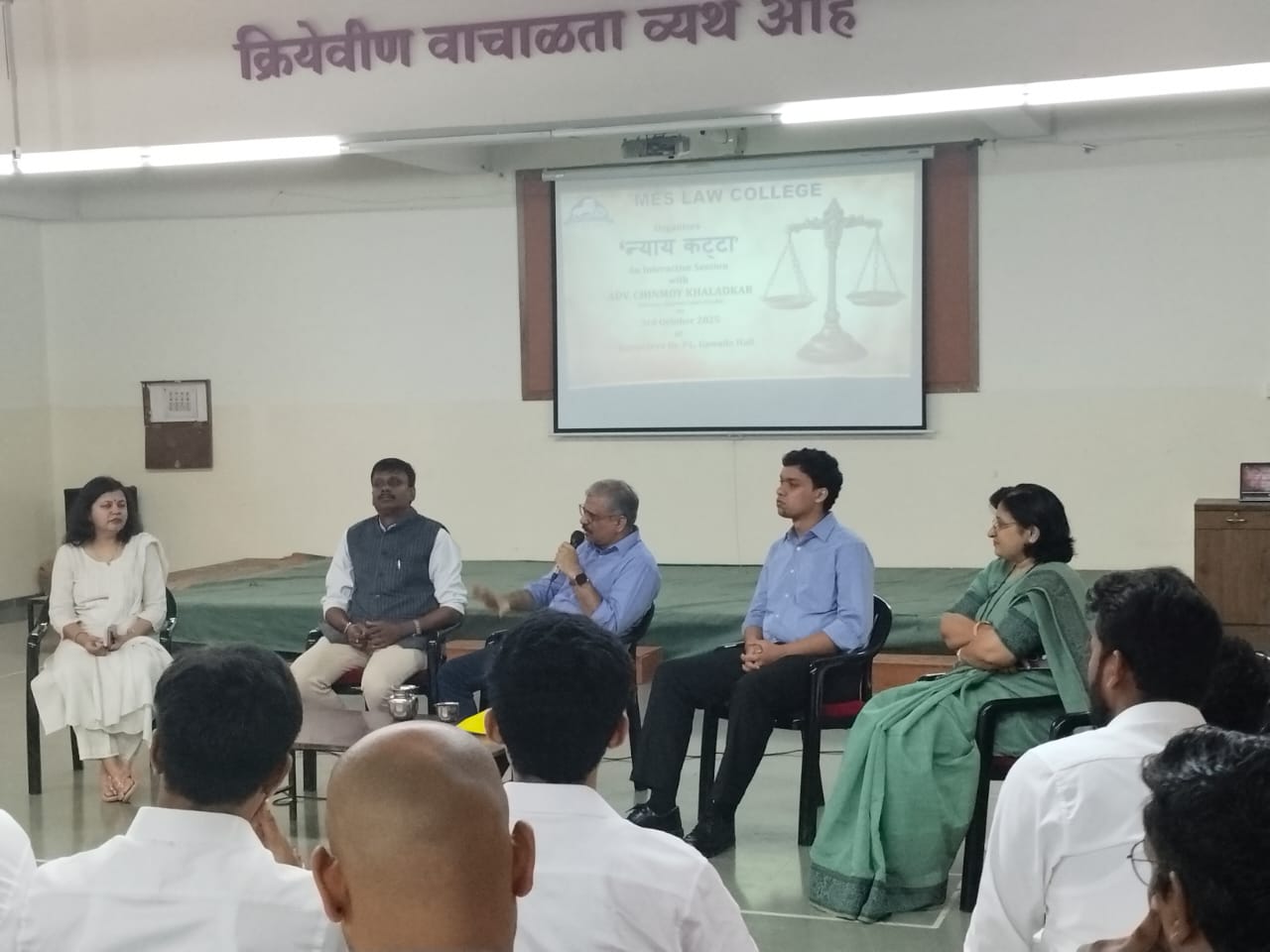 ॲड. चिन्मय खलदकर यांच्यासोबतच्या ‘न्यायकट्टा’ या संवादात्मक सत्राचा पहिला भाग ३ ऑक्टोबर २०२५ रोजी डॉ. पी.एल. गावडे सभागृहात आयोजित करण्यात आला होता. ॲड. खलदकर सर हे भारताच्या सर्वोच्च न्यायालयात वकिली करतात.