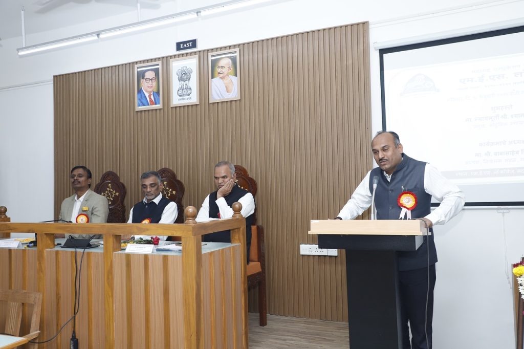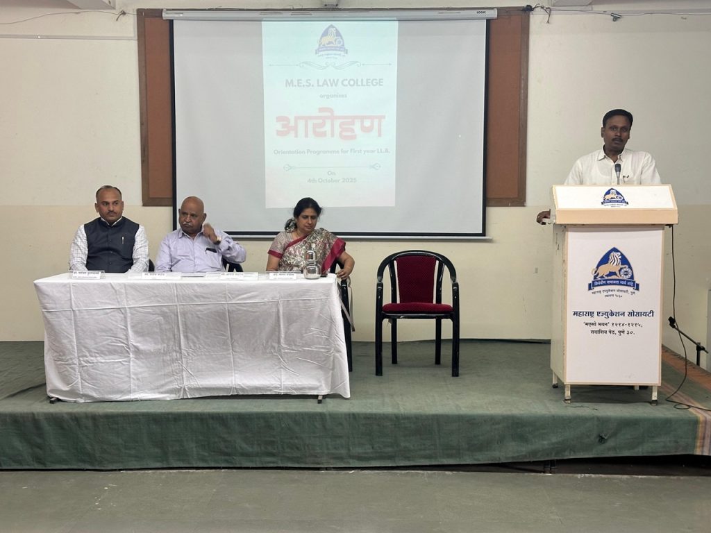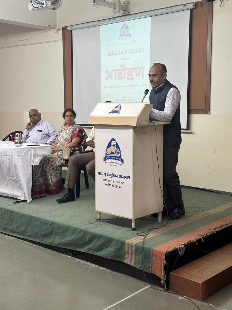 मा. अॅड. सागर नेवसे यांनी आपल्या प्रास्ताविकात एमईएस लॉ कॉलेजमध्ये क्रमिक अभ्यासक्रमाच्या शिक्षणाबरोबरच विद्यार्थ्यांमध्ये अनुभवावर आधारित व्यावसायिक दृष्टीकोन विकसित करण्यावर भर देण्यात येणार असल्याचे सांगितले.
