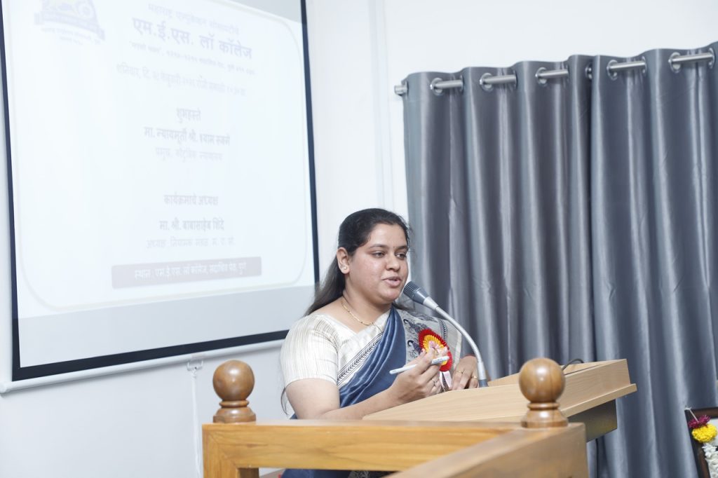 समारंभाचे सूत्रसंचालन एमईएस लॉ कॉलेजच्या प्रा. शिवानी मुजुमदार यांनी केले.